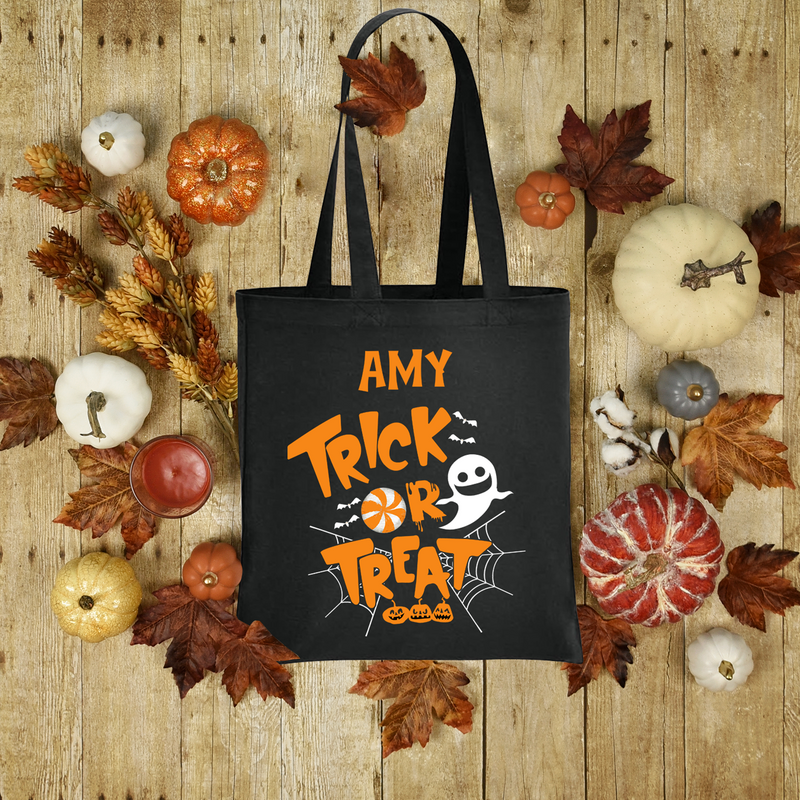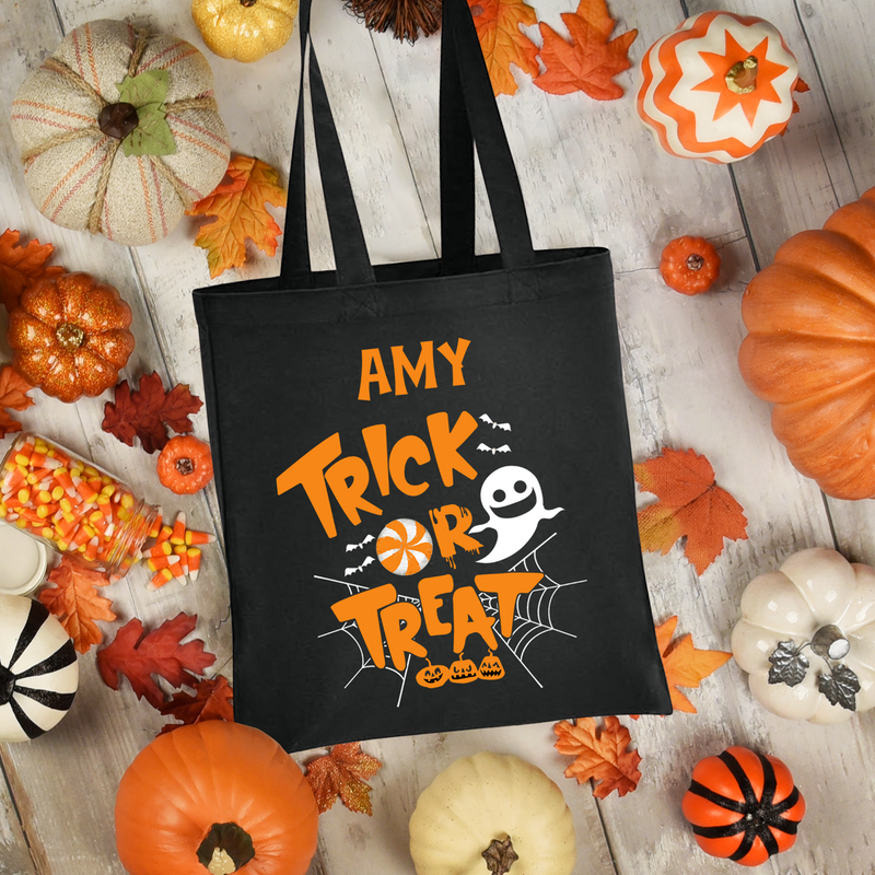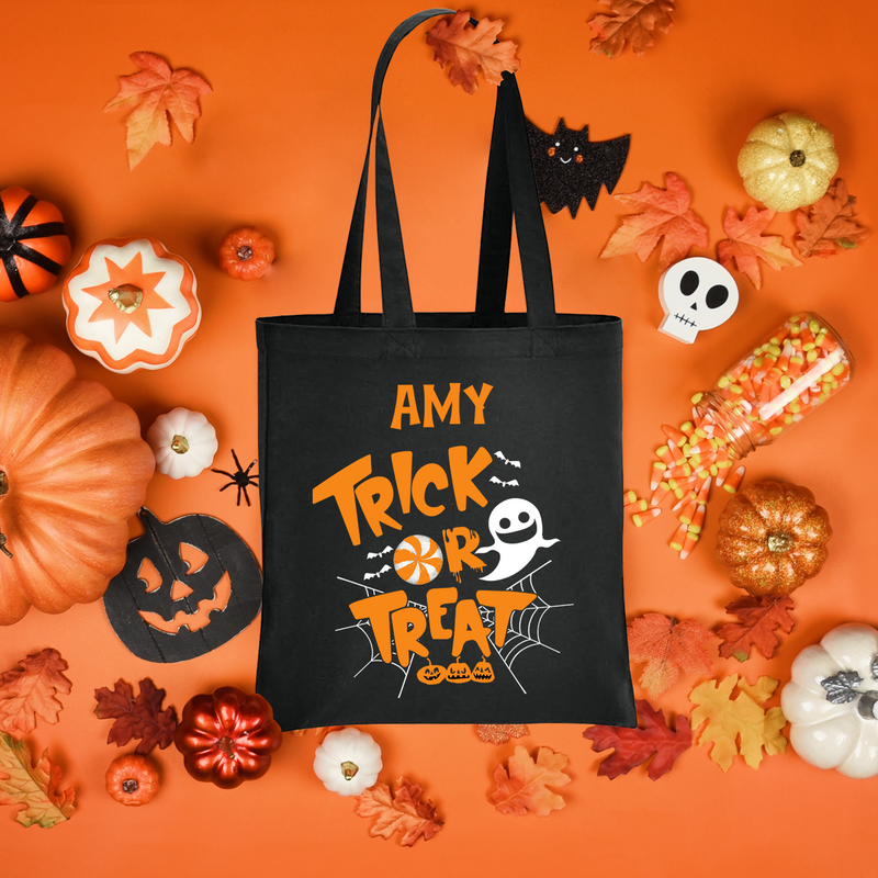 Personalised Halloween Trick or Treat Bag Black Gift Bag Tote Bag Happy Halloween Gifts for Kids Pumpkin Childs Halloween Accessories