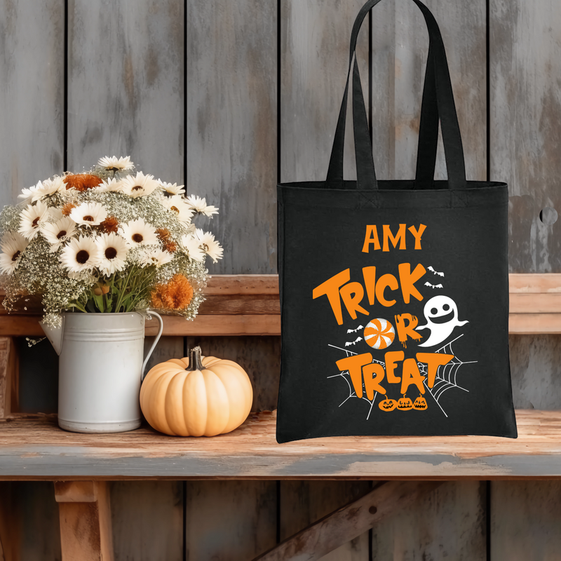 ๐ Personalised Halloween Trick or Treat Bag perfect for trick-or-treating.