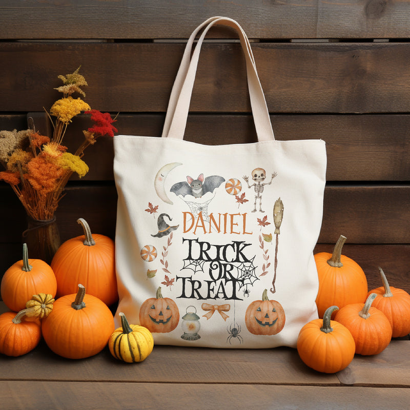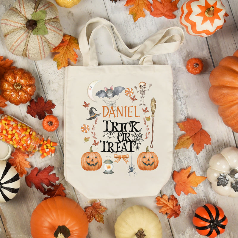 Personalised Halloween Trick or Treat Bag with Pumpkin Design Gift Bag Tote Bag Gift for Kids Sweets Candy Childs Halloween Accessories
