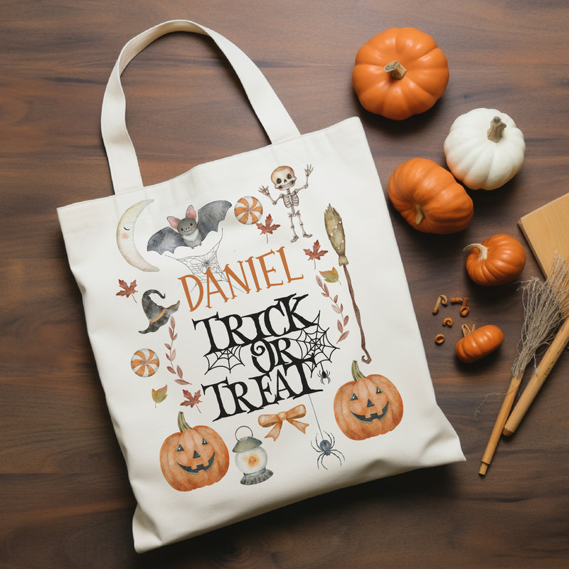 🎃 Personalised Halloween Trick or Treat bag with the name of your choice – make it a special and unique gift!