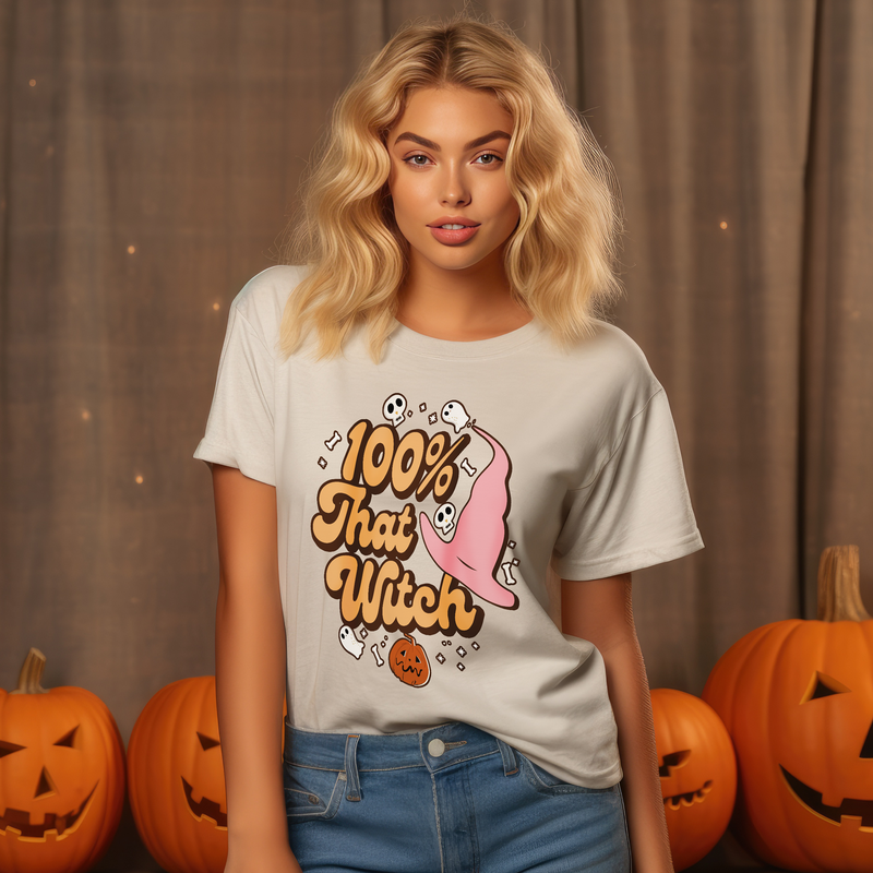 Retro Halloween Women's T-Shirt Gift - Seasonal Design with 100% That Witch