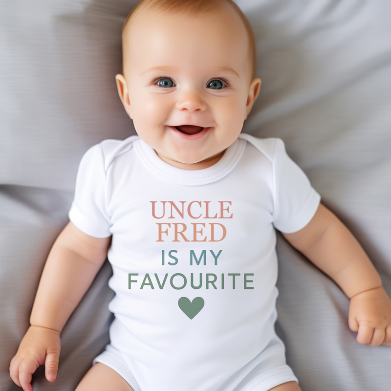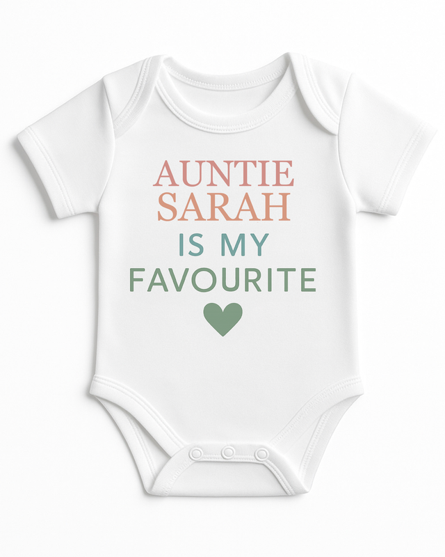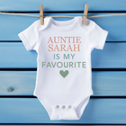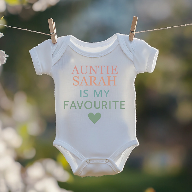 Personalised Auntie Or Uncle is My Favourite BabyGrow Vest Custom Bodysuit Gift for New Baby – Soft Cotton Baby Onesie for Boys & Girls – Unique Newborn Baby Shower Present – Cute Baby Outfit