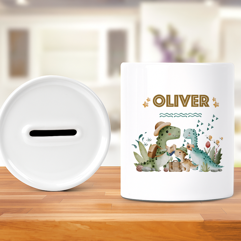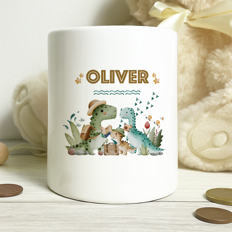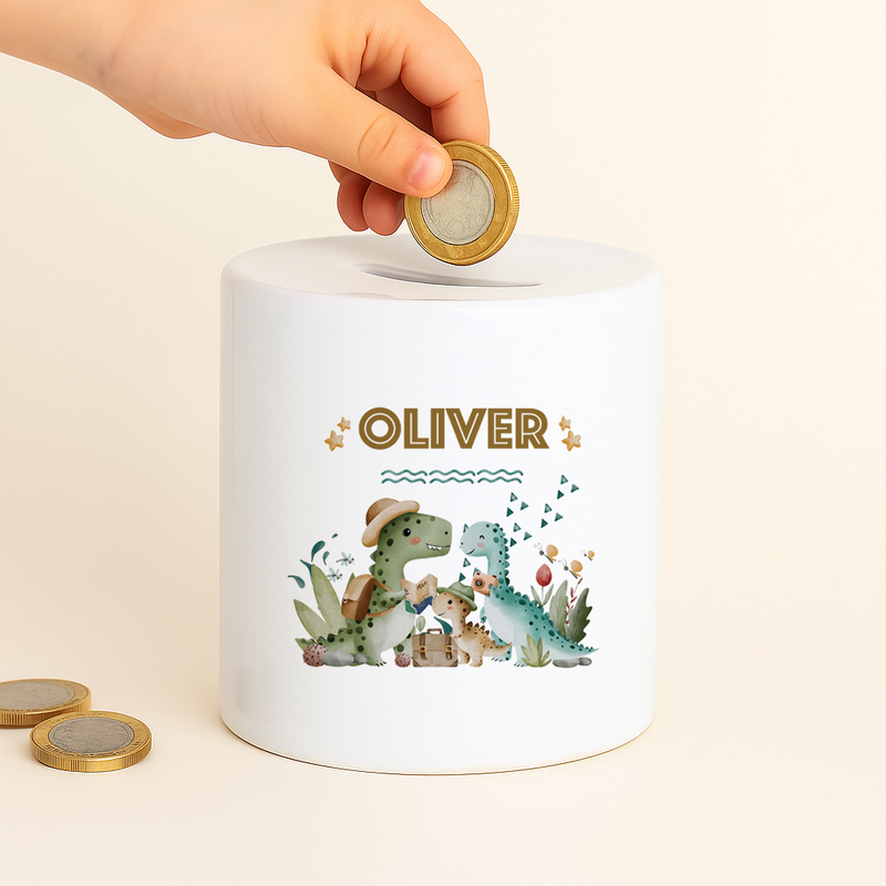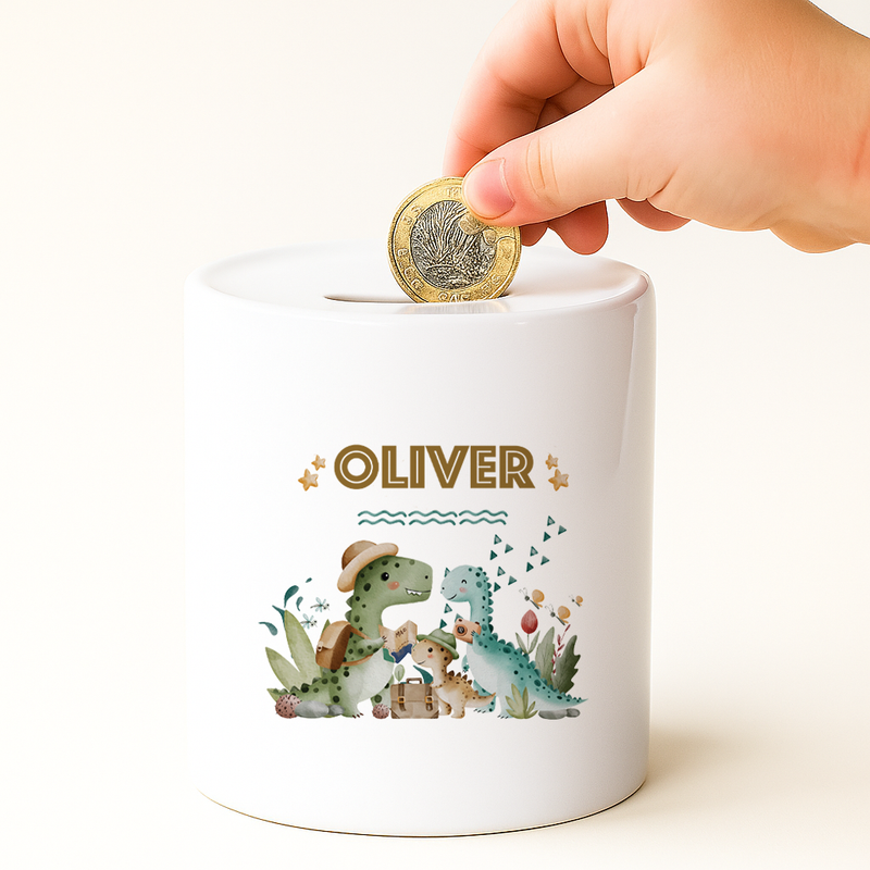 Personalised Money Bank Boys Dinosaur, Kids Money Box Customised Gift Baby Child Birthday