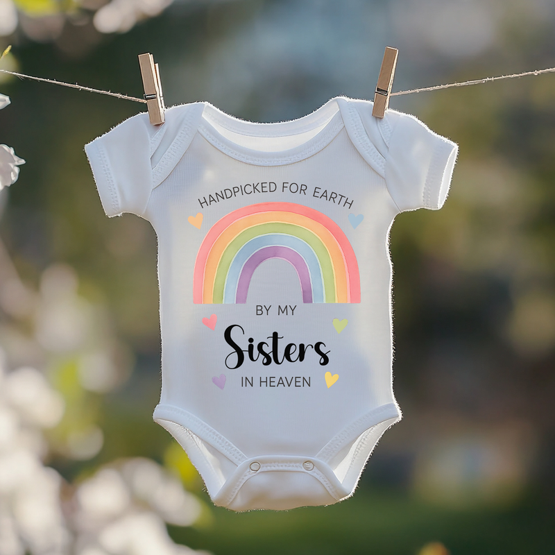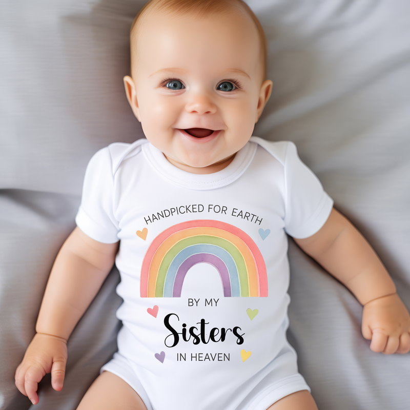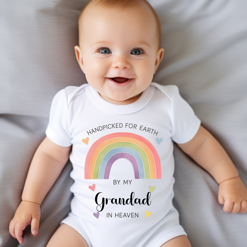 🌈Uniquely Personalised Keepsake: This personalised babygrow vest features a heartfelt "Handpicked for Earth" rainbow design, making it a meaningful newborn gift that new parents will treasure forever. A custom touch that adds love to every moment with your little one.