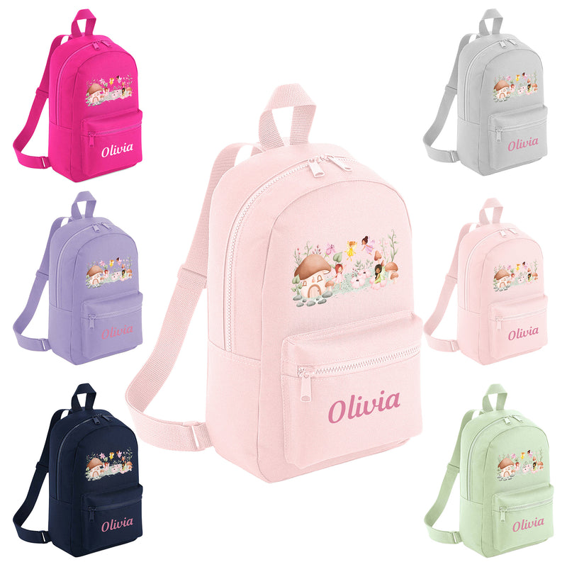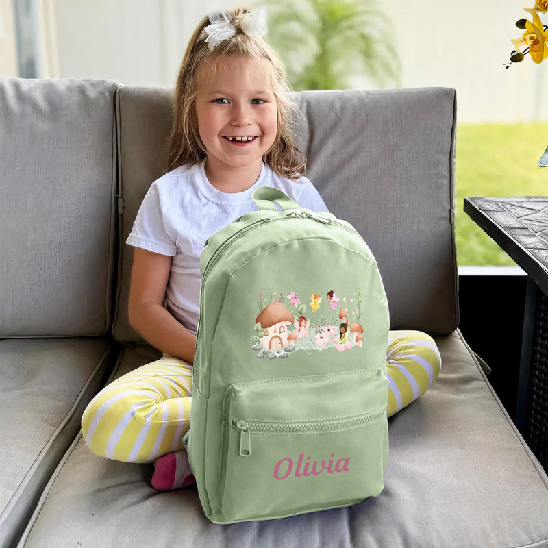 Personalised Backpack for Girls Fairy Garden Design | Nursery Rucksack for Toddlers | Customised School Bag for Kids with Name