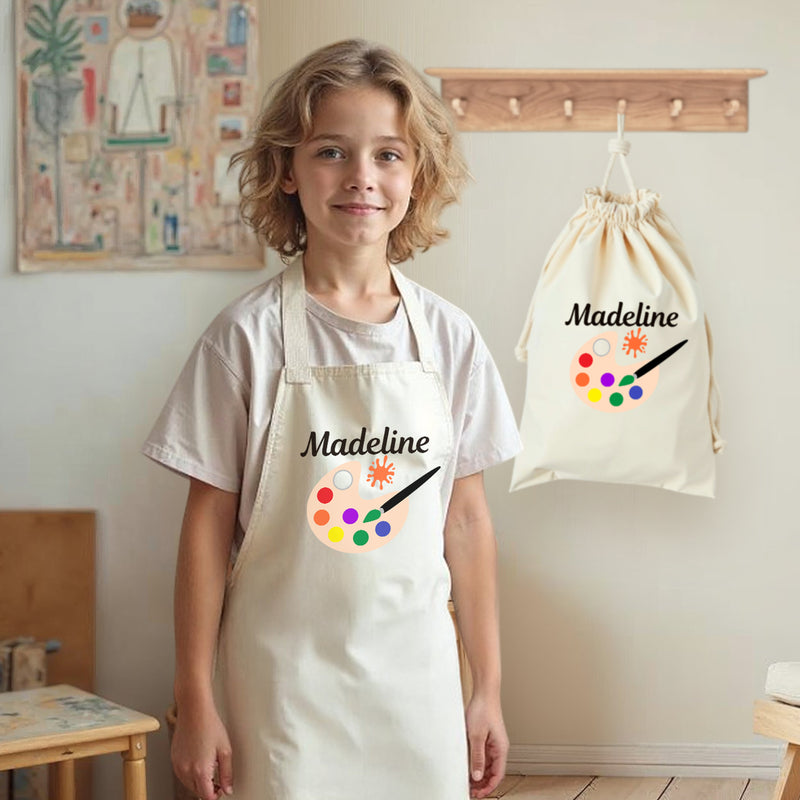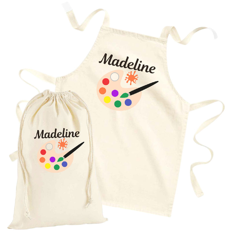 Personalised Painting Apron And Bag Set School Kids With Name Boy or Girl Age 3-10