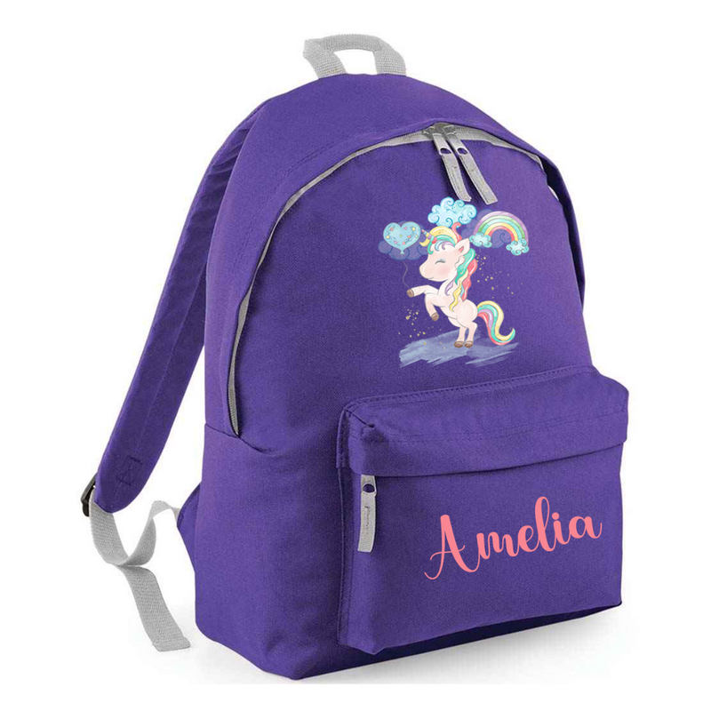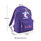 Personalised Unicorn Backpack for Girls Large 18L Kids Rucksack Purple Design School Bag for Nursery and Toddlers Customisable Children's Baby Pack 42x31x21cm