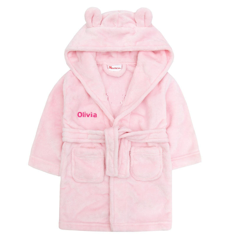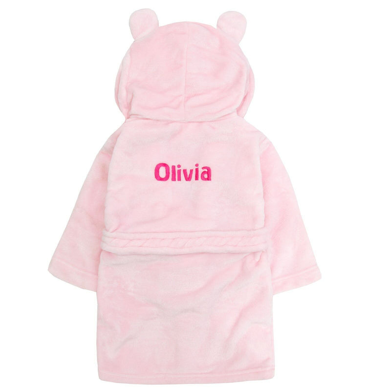 Embroidered Personalised Soft Baby Pink Dressing Gown Bath Robe Teddy Ears