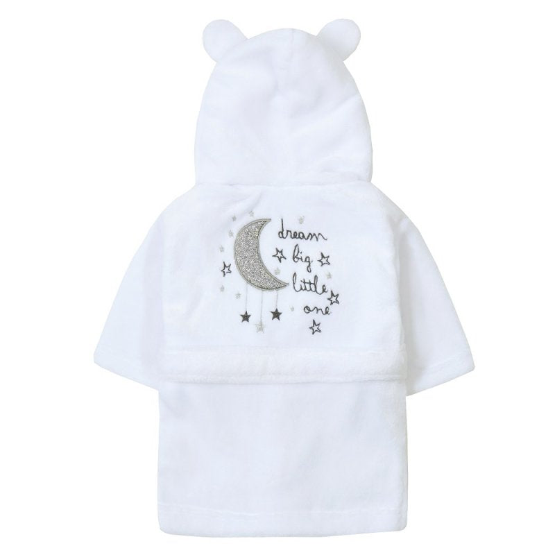 Embroidered Personalised Soft Baby White Dressing Gown Bath Robe Moon and Back