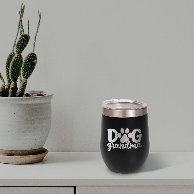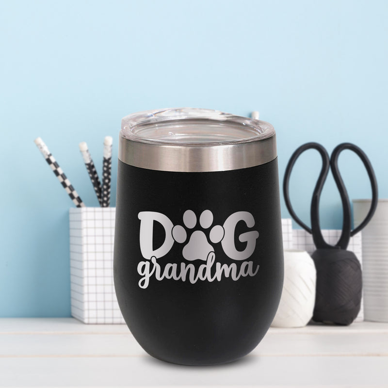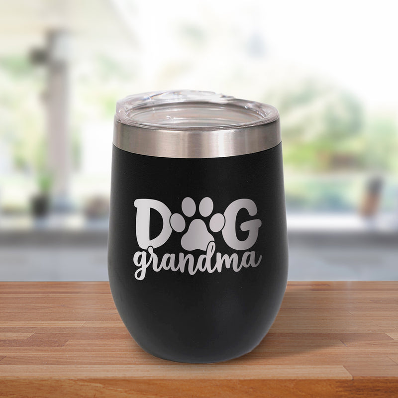 - Dog Grandma Mug Dog Grandma Gift Metal Insulated Wine Tumbler with Lid Black Silver Friends Gifts For Women Present Dog Themed Gifts Dog Cup Lover Dog Grandma Cup