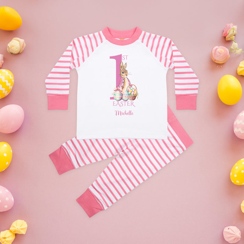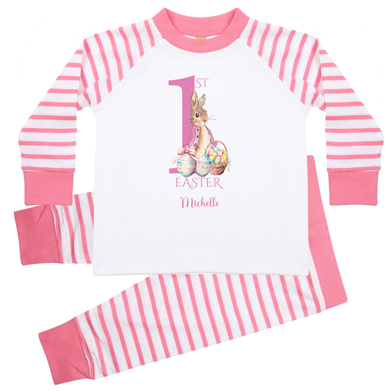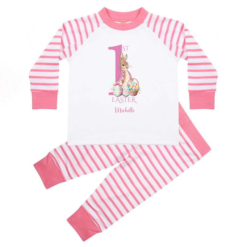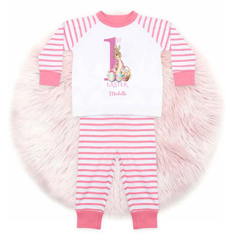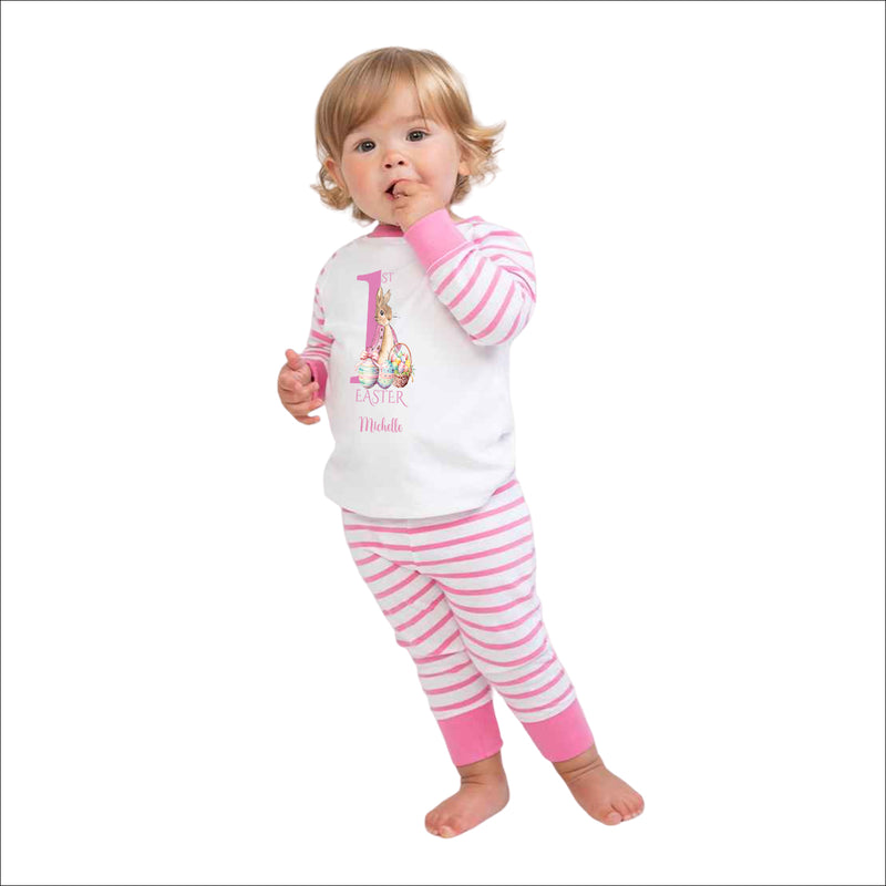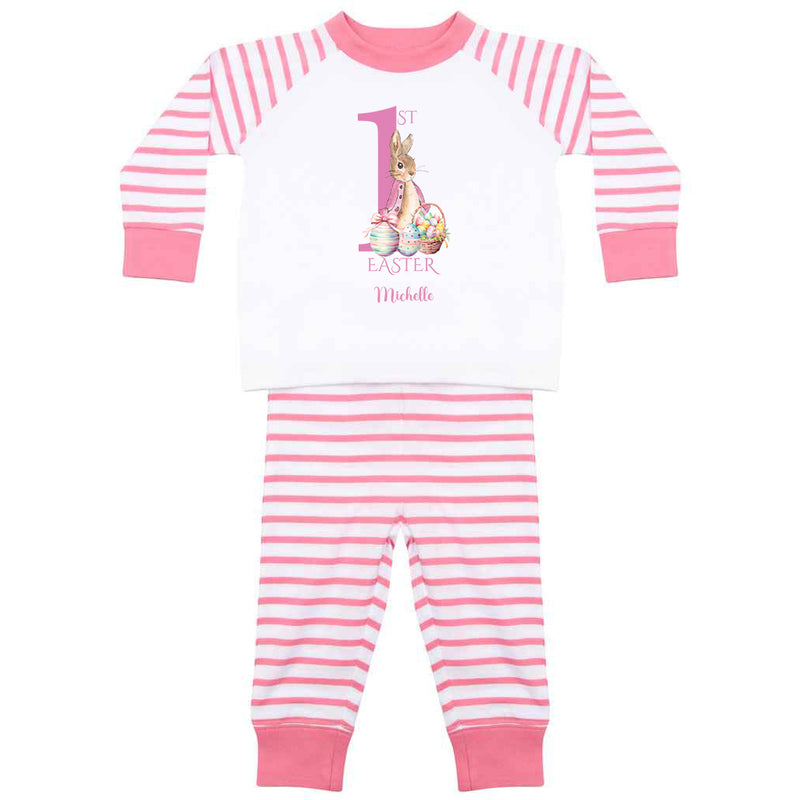 Personalised Baby Girl Pyjamas - My 1st Easter, 6-12 Months, Rabbit Pink Outfit Clothing Stripe PJs