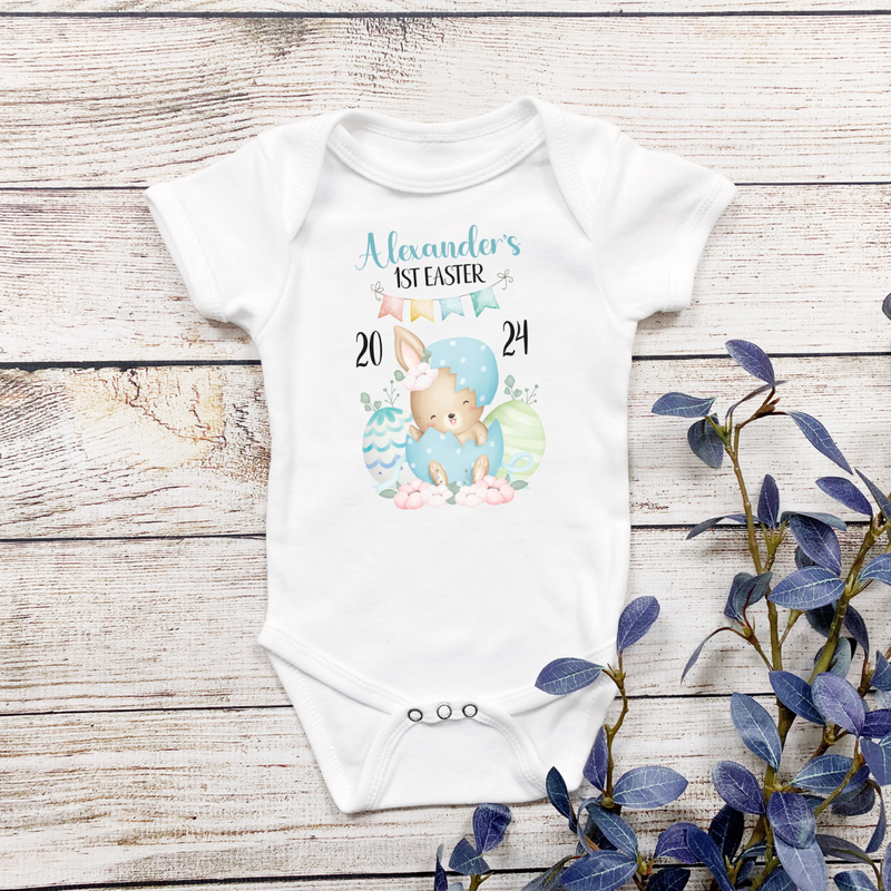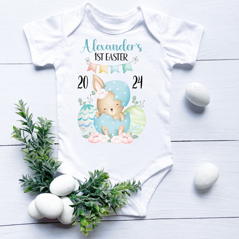 Personalised BabyGrow 1st Easter Bunny Design Newborn, 0-12 Months Vest Boy Baby Boy