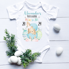 Celebrate your baby boy's first Easter with our Personalised BabyGrow 1st Easter Bunny Design. This adorable newborn vest is designed specifically for boys aged 0-12 months, making it a perfect keepsake for this special occasion.