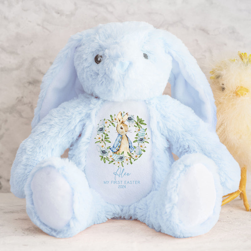 Personalised Blue Bunny Teddy Bear Baby Boy My 1st Easter New Baby Gift - Rabbit Keepsake