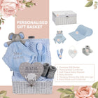 🐘 Welcome to the perfect gift for a special little boy! Our Personalised Baby Gift Basket for Boys is the perfect way to show your love and appreciation for a special little one. This beautiful blue baby gift hamper basket is sure to make a lasting impression.
