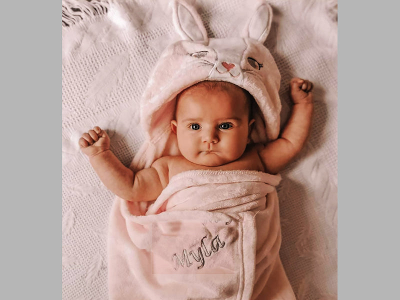 - 🐰 Personalised Baby Girl Blanket - This gorgeous novelty hooded blanket is personalised with the name of your choice up to 12 Characters