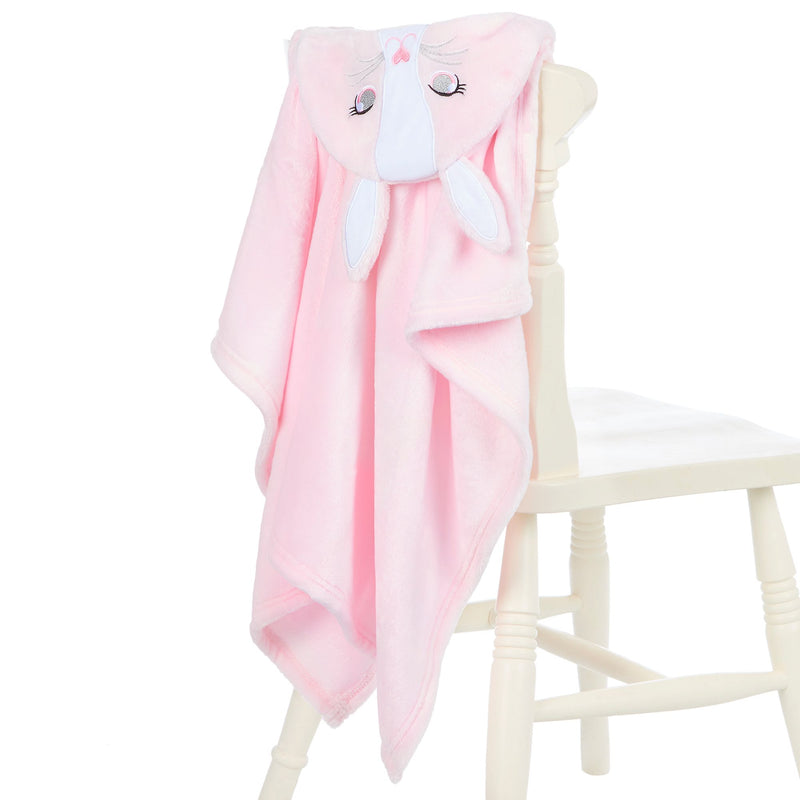Personalised Baby Blanket with Hood Kids Hooded Blanket Pink Bunny with Ears Toddler Gift
