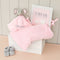 - New Baby Gift Set - Gorgeous baby gift set consists of super soft: white, grey and pink personalised deer comforter 30cm, Personalised baby dressing gown , breathable waffle supersoft cot blanket 90x70cm, brush and comb set, Baby booties, Dream big little one baby plaque.