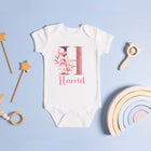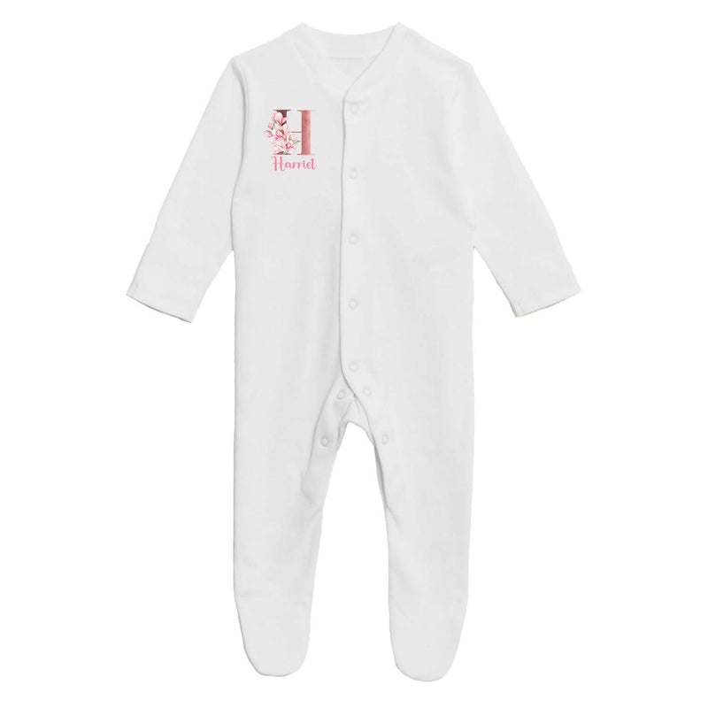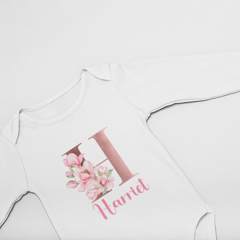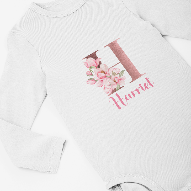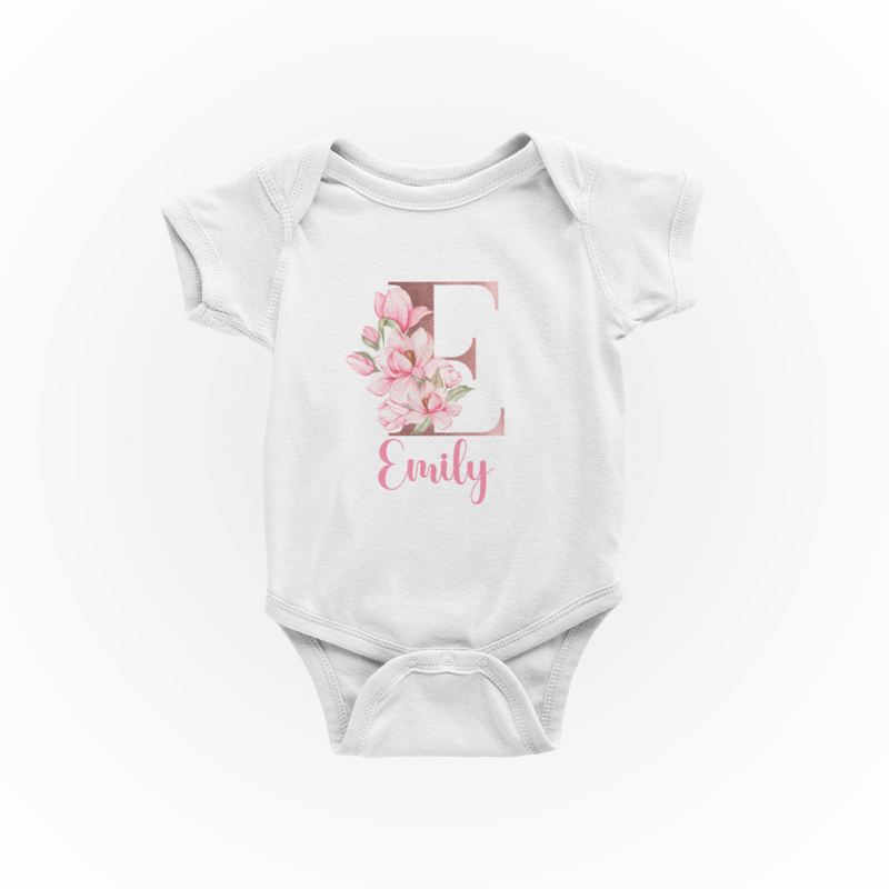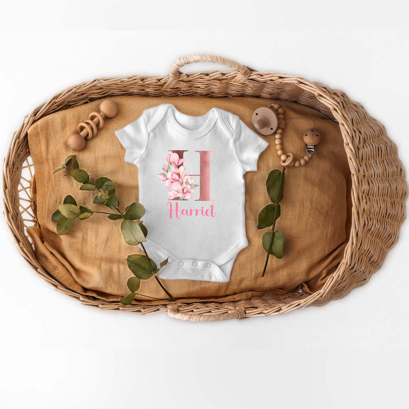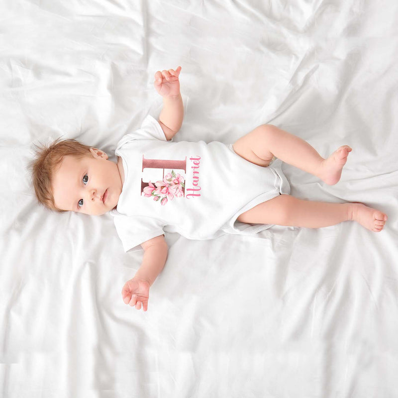 Personalised Baby Grow 0-3 Months Pink Floral Letter Name Newborn Gift Baby Shower Bodysuit Present Bib Girl Baby Vest