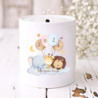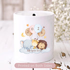 Personalised Baby Money Box Ceramic Custom Keepsake Unisex 2025 Design, Baby Girl Boy Gift First Birthday My 1st Money Box Birth Details Front and Back