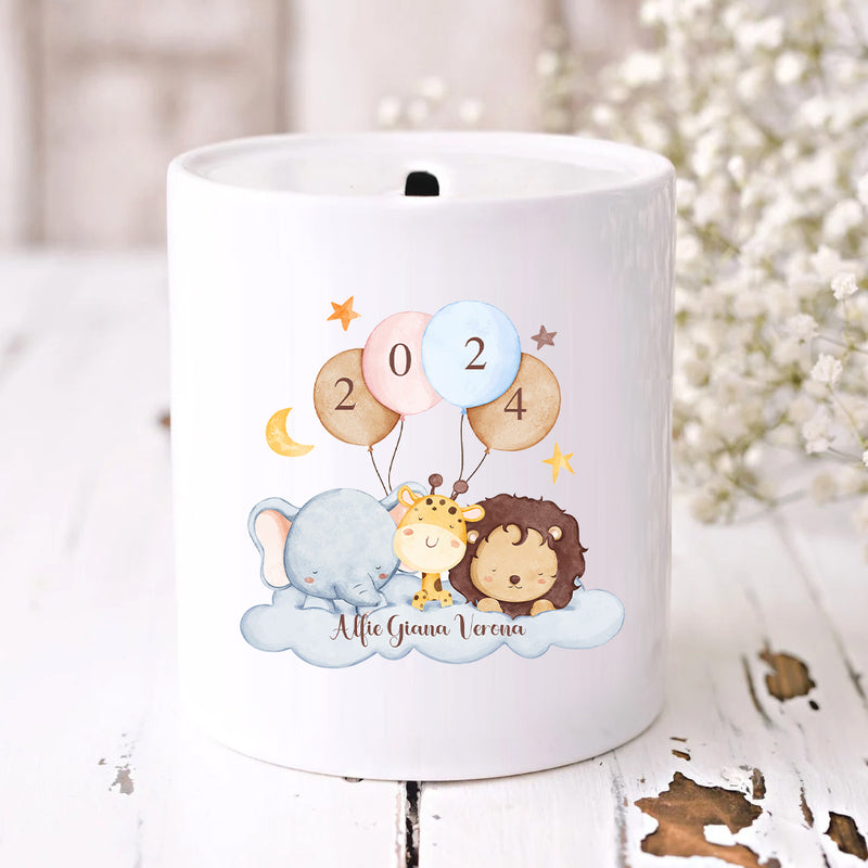 💷 Customise with the baby's birth details for a unique touch 💷 High-quality ceramic construction ensures durability and longevity 💷 Modern 2025 design adds a stylish flair to the traditional money box 💷 Perfect gift for baby girls, baby boys, or unisex gifting occasions 💷 Ideal keepsake for first birthdays, christenings, or baby showers