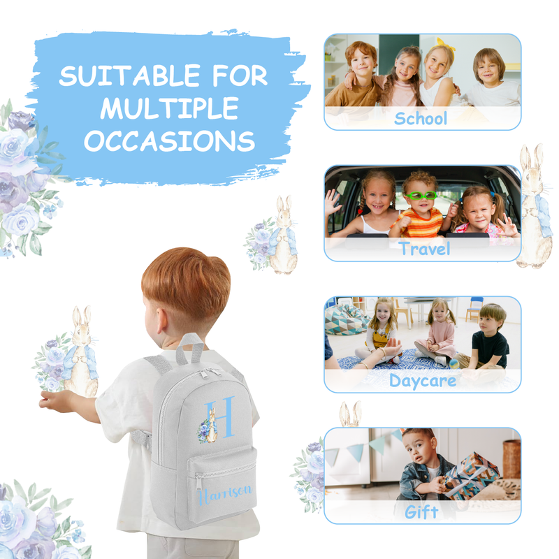 Personalised Backpack Baby Toddler Rabbit Rucksack - Grey Blue Boys Nursery Baby Gift