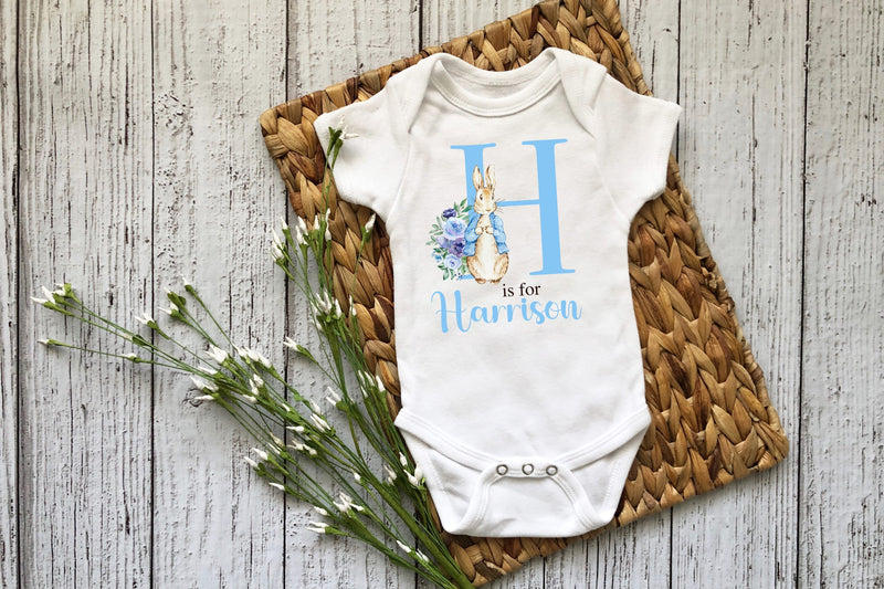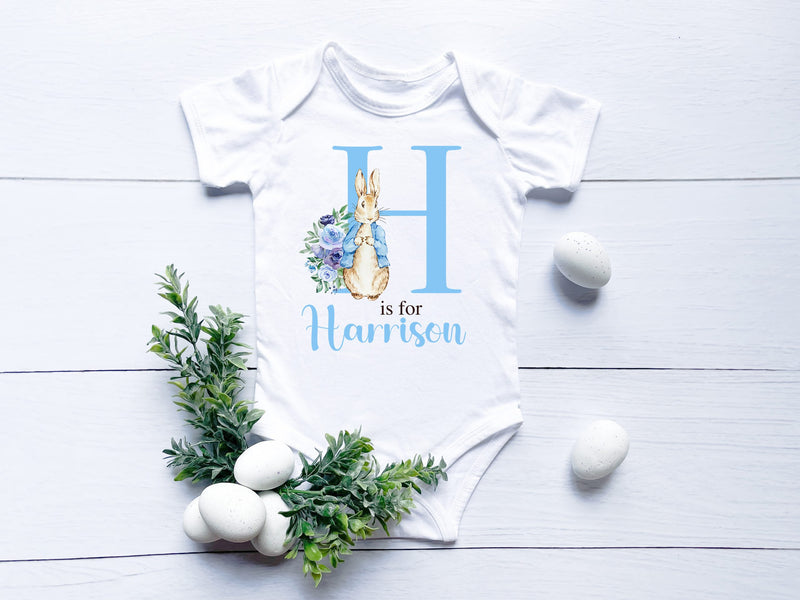 Personalised Blue Bunny Rabbit Baby Grow - Newborn Baby Boy Gift with Name, Babygrow Vest Romper
