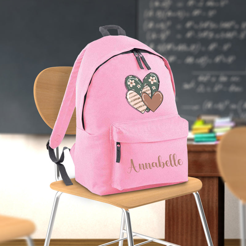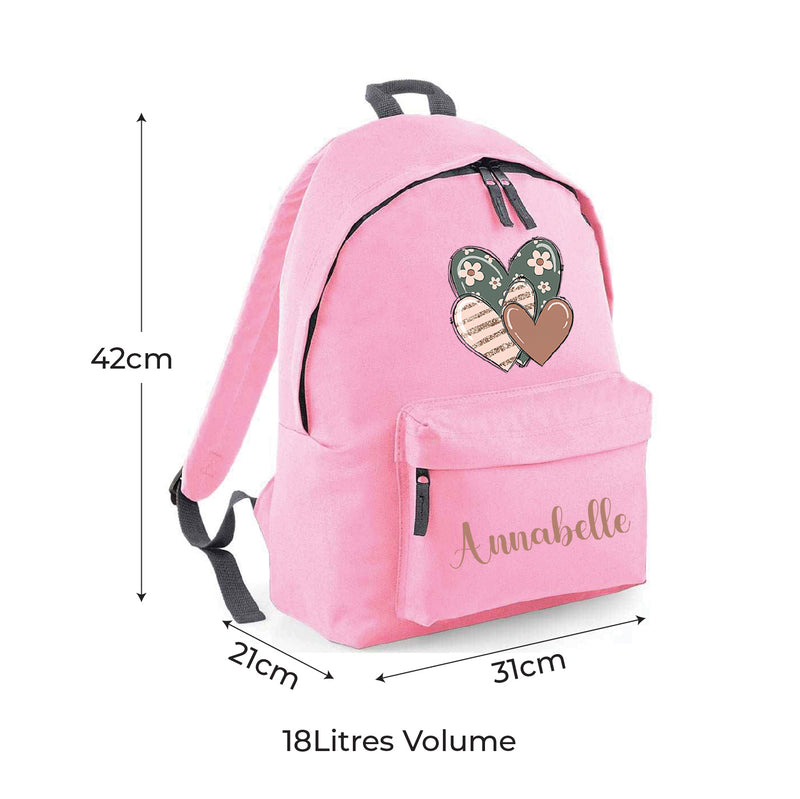 Personalised Boho Heart Backpack for Girls Large 18L Kids Rucksack School Bag for Age 8 9 10 Teenager Customisable Children's Pack Name 42x31x21cm