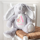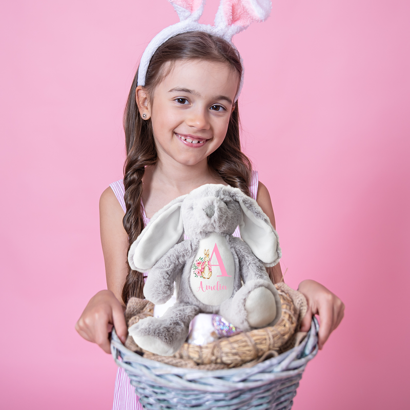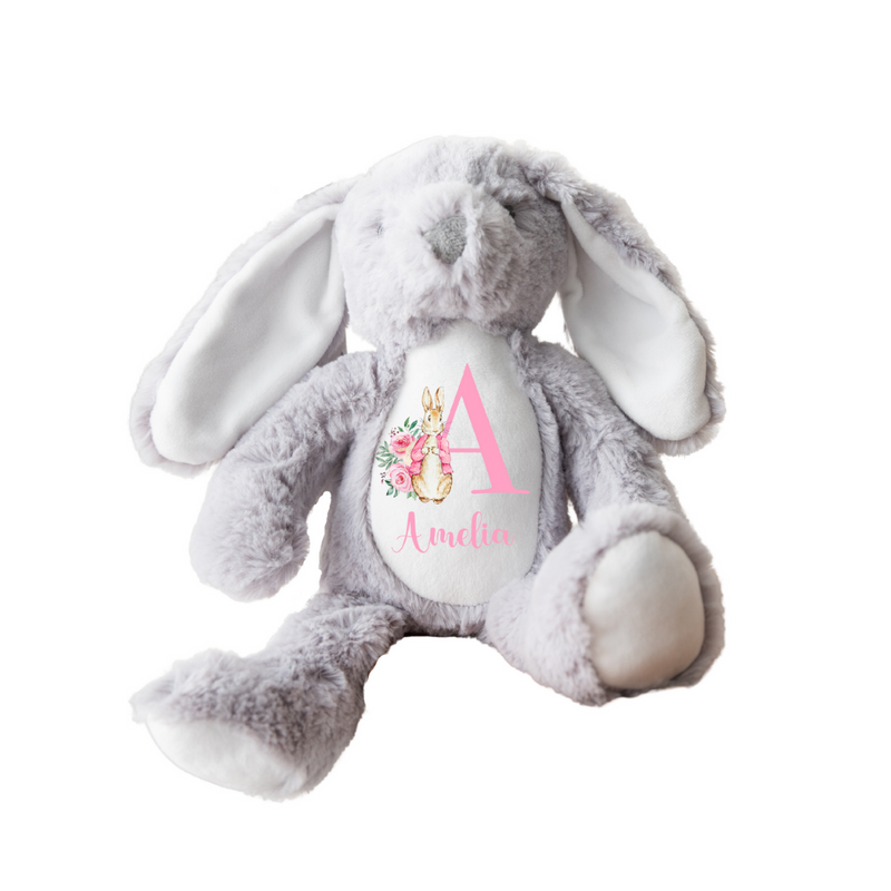 Personalised Bunny Rabbit Letter Name Baby Grey Pink Gift For Newborn Girl Teddy Bear 23cm New Baby Present Easter