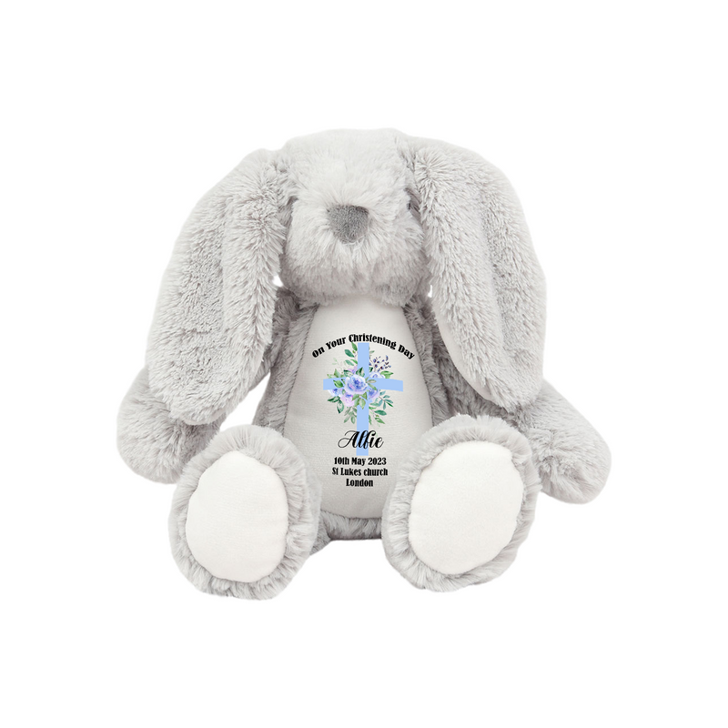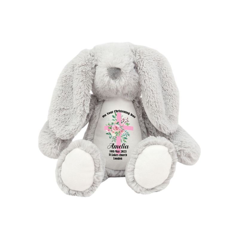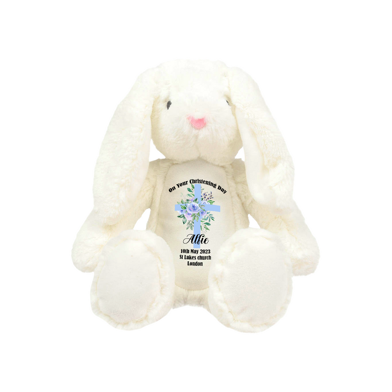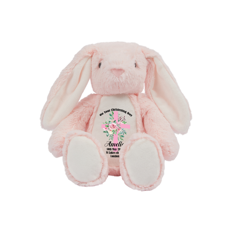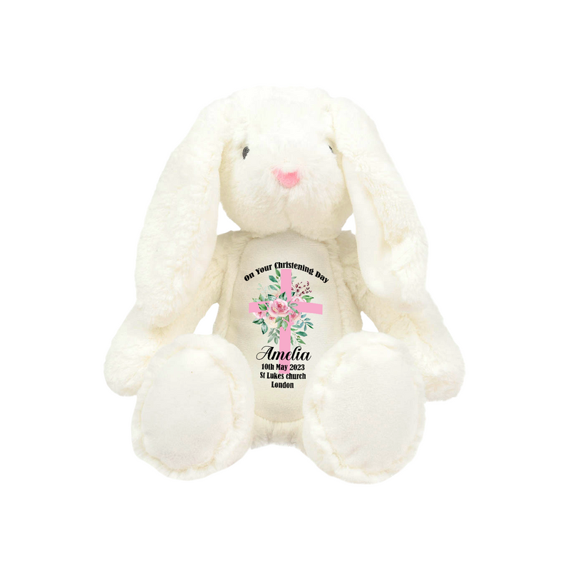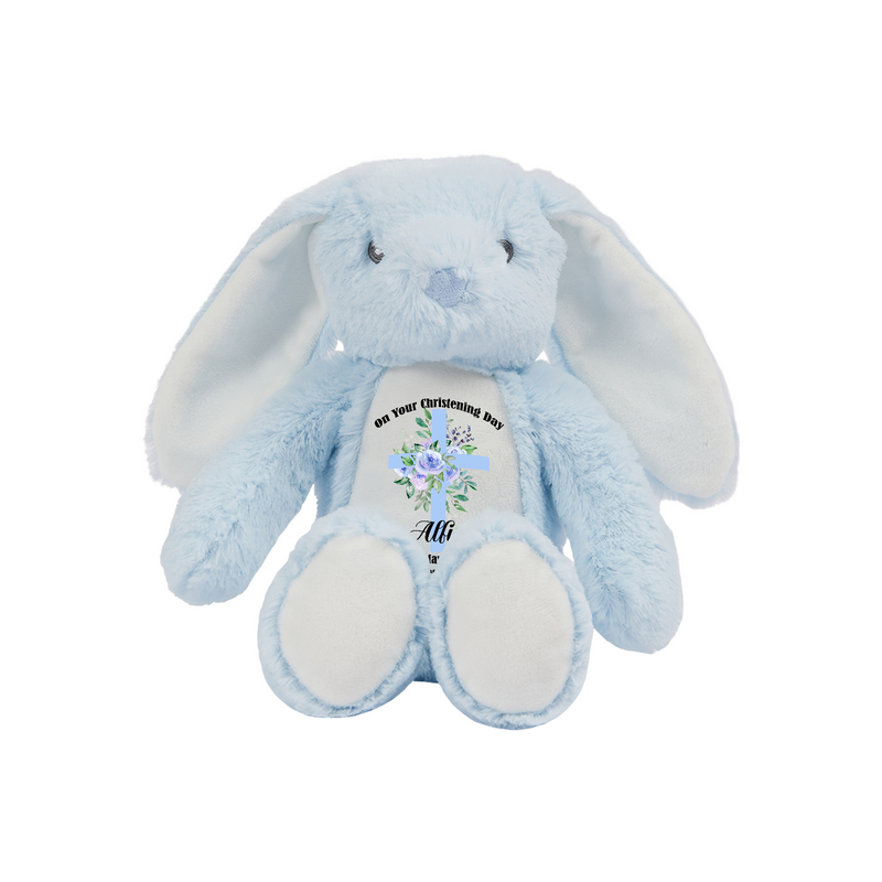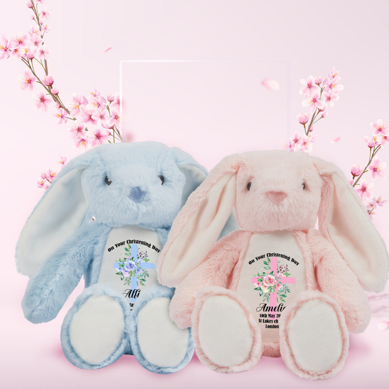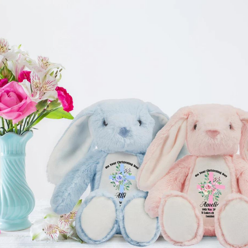 Personalised Christening Bunny Baptism Gifts For Girls Boys Christening Present Godson Goddaughter Baby Rabbit Keepsake Pink Blue 23cm