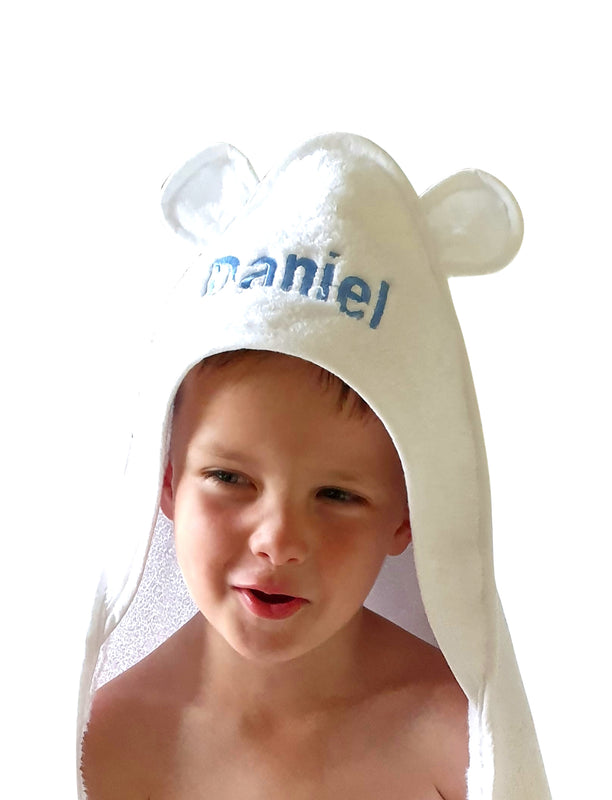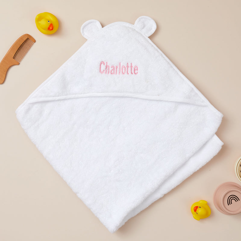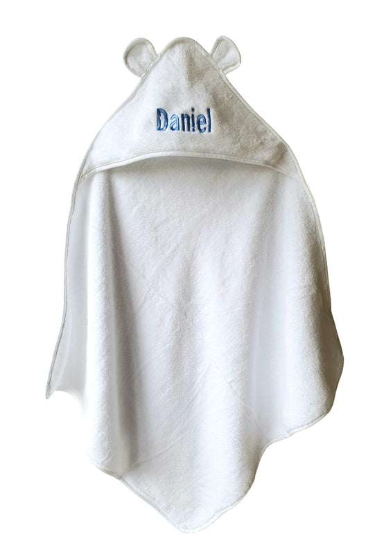 Personalised Embroidered Baby Bath Towel With Ears Blue or Pink