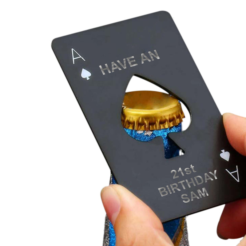 - ♠ Portable ♠ Measuring just the size of a playing card, this metal bottle opener is compact and portable. It fits easily into your wallet, purse, or pocket, so you can use it whenever you need it.. It's perfect for camping trips, parties, and on-the-go use.