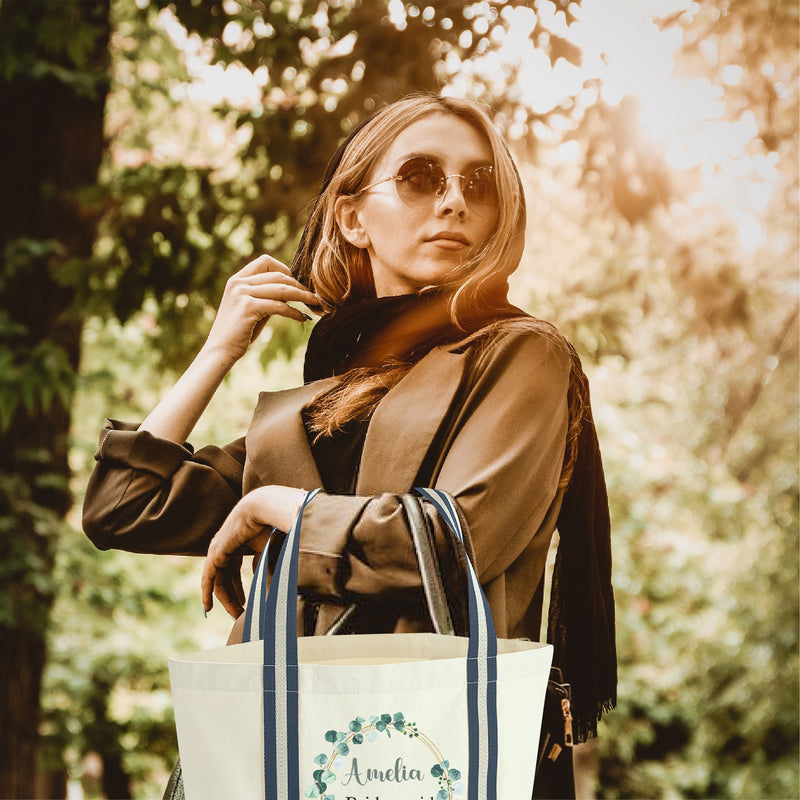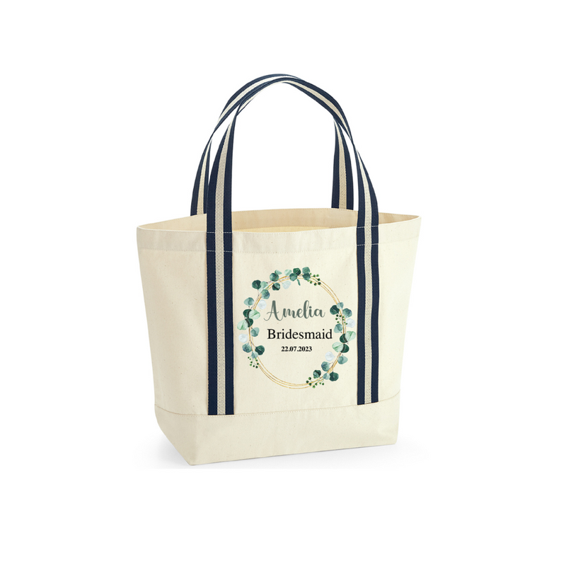 Personalised Bride Beach Bag Bridesmaid Bridal Party Shopping Bag Hen Party Gifts Present Eucalyptus 36cm