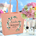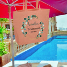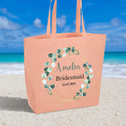 Personalised Bride Large Peach Beach Bag Bridesmaid Bridal Party Shopping Bag Hen Party Gifts Present Eucalyptus Bridal Party