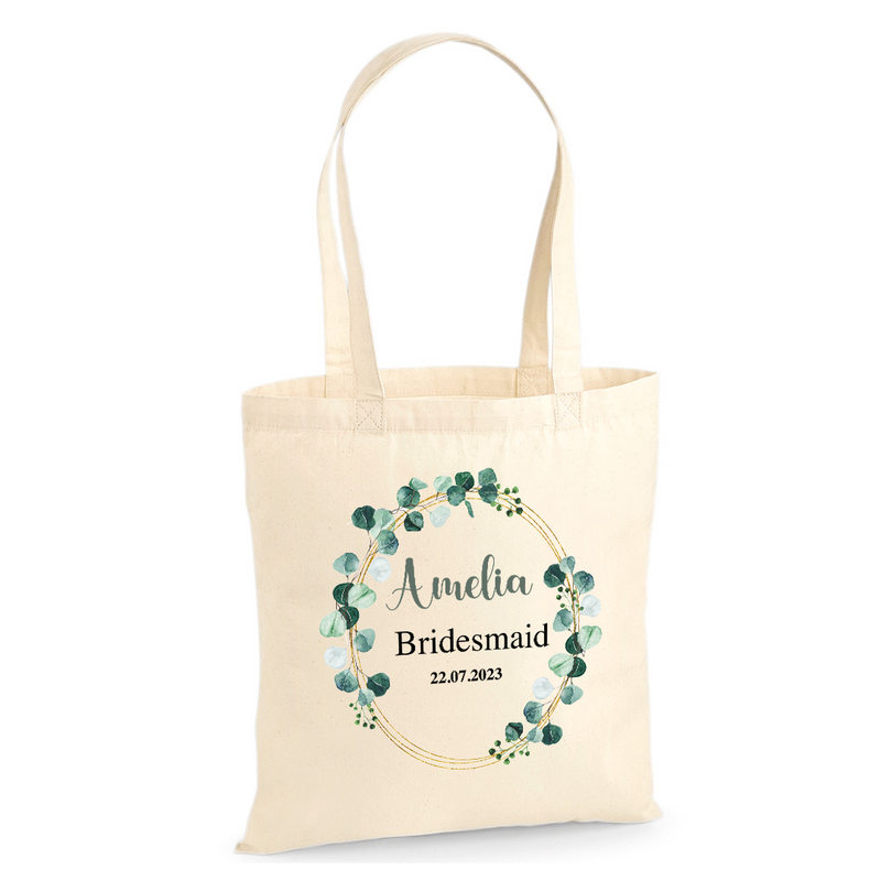 Personalised Bride Tote Bag Bridesmaid Bridal Party Shopping Bag Hen Party Gifts Present Eucalyptus 42 x 38cm