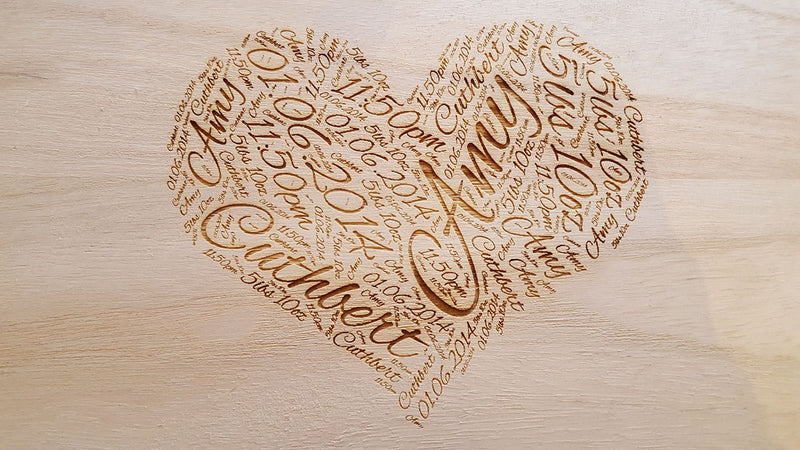Personalised Engraved Baby Wooden Birth Keepsake Memory Memory Box Heart