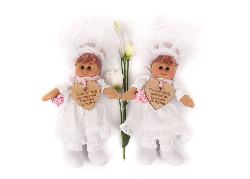 Personalised Engraved Mini Rag Doll Bride Bridesmaid Flower Girl Gift 19cm