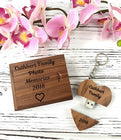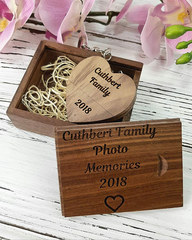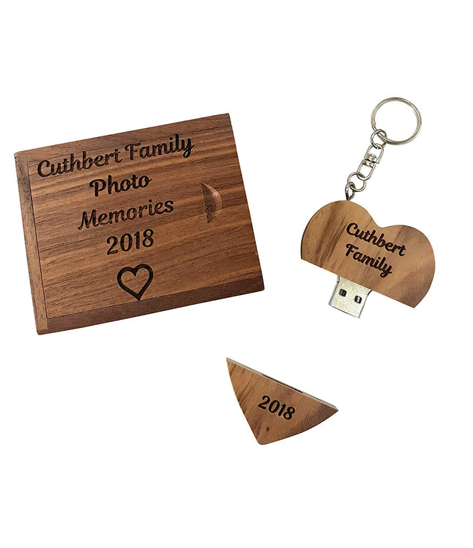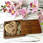 Personalised Engraved USB Flash Drive Walnut Heart Keyring 16GB - Personalised Engraved Wooden Case Photo Gift Wedding