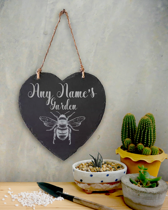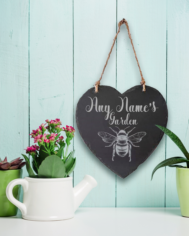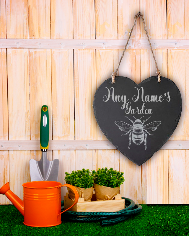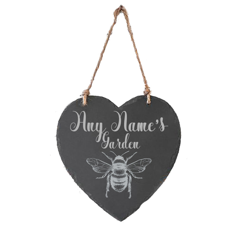 Personalised Garden Sign Engraved Slate Heart Sign Personalised Garden Plaque Bee