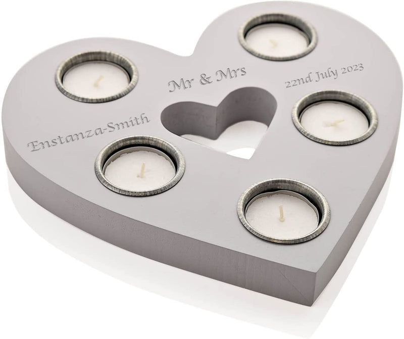 Personalised Heart Shaped Tea Light Holder Candle - Engraved Wedding Day & 1st - Custom Couple Present - Table Centrepiece Decor 20cm