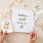This Personalised Hen Party Scrapbook Guest Book is the perfect way to capture all the memories of your special day. Handmade with love, this photo album scrap book is the perfect way to keep all your special memories in one place. The scrapbook measures 22 x 22cm and contains 50 pages, giving you plenty of space to store all your photos and memories. The cover is personalised with the name of the bride and the date of the hen party, making it a truly unique and special keepsake. Inside, you'll find a variety of pages to fill with photos, messages and memories from your special day. There are also pockets to store cards, tickets and other mementos. This scrapbook is the perfect way to remember your hen party and make sure all the memories last a lifetime.