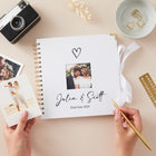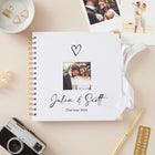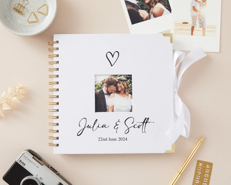 Personalised Linen Wedding Scrapbook Album - Custom Couples Gift Guest Book - Engagement Present Love Heart Design - 22cm Photo Window Cover