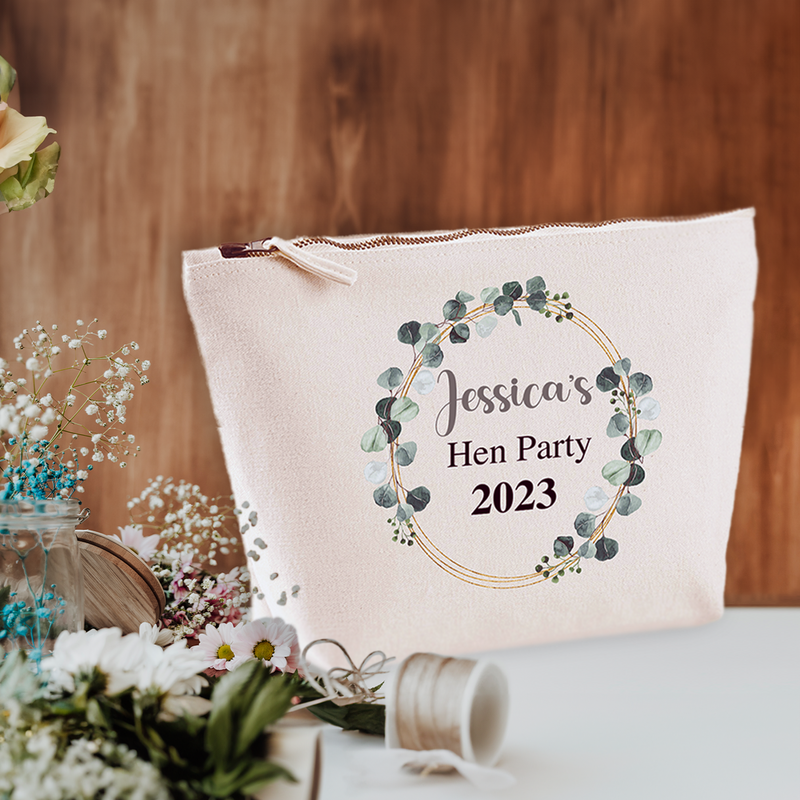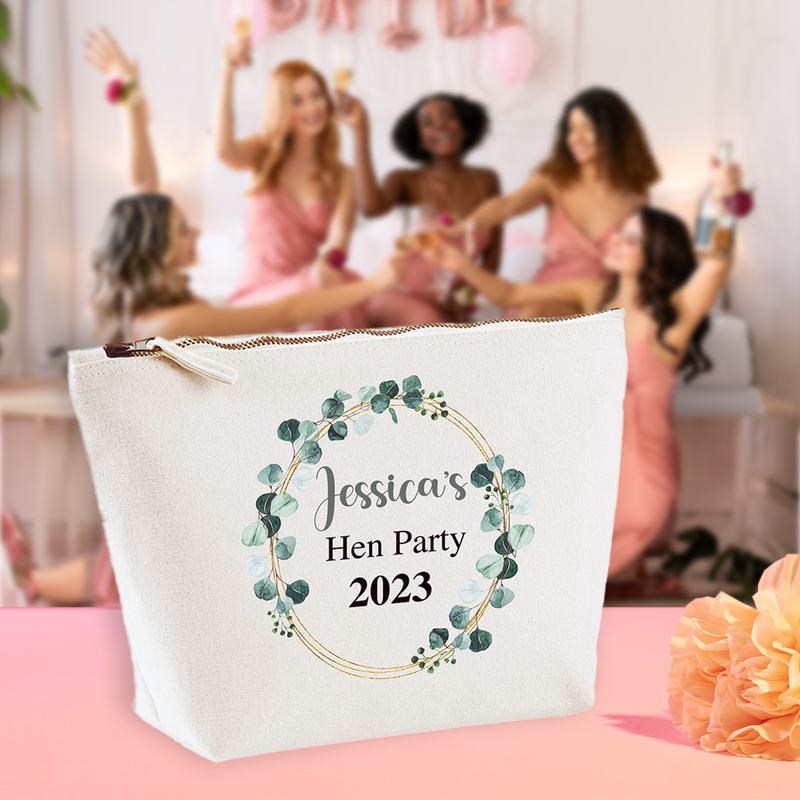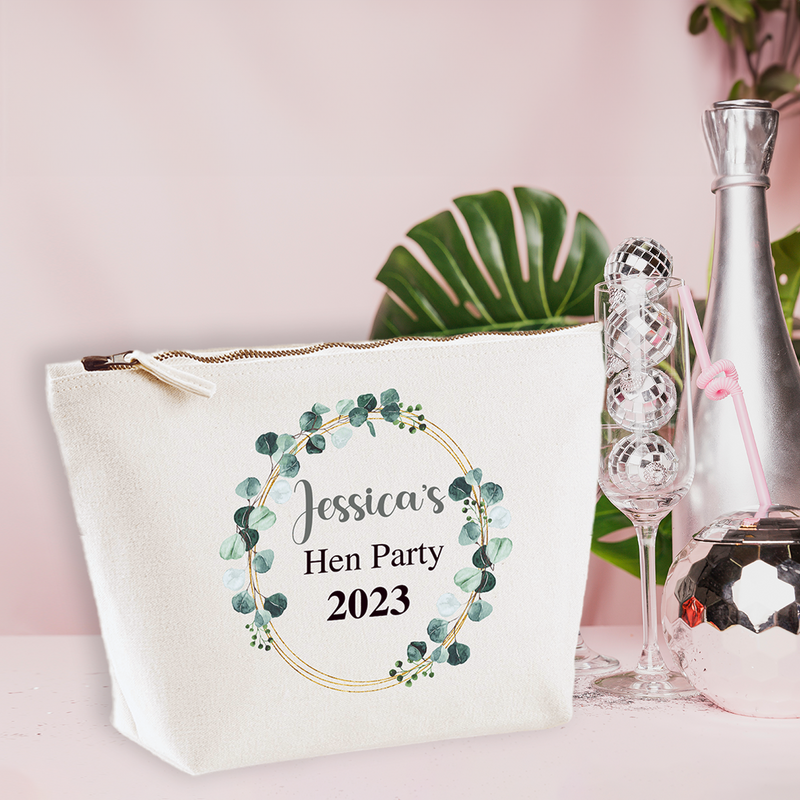 Personalised Make Up Bag Pouch Bridesmaid Gifts For Wedding Day Hen Do Party Bags Cosmetic Purse Bridal Party Team Bride Eucalyptus