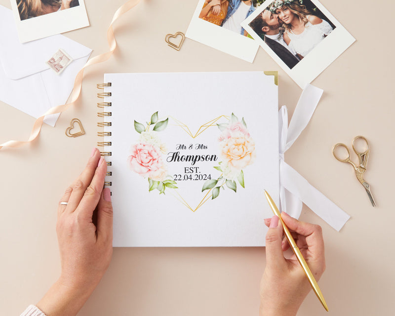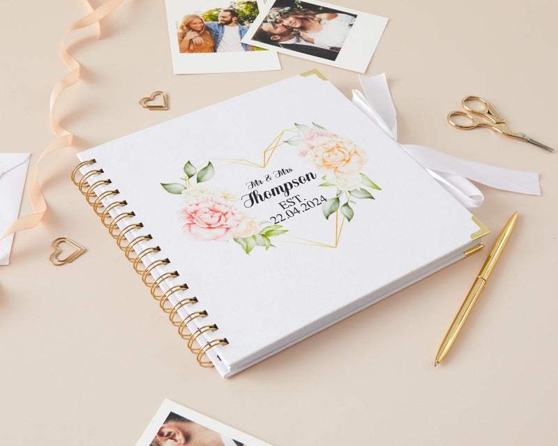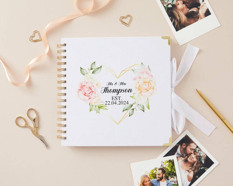 Personalised Wedding Linen Scrapbook Guest Book Photo Album Memories Bride & Groom Couples Love Heart