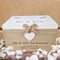 - ✉️ Large Wedding Memory Box - White lid with green eucalyptus leaf design Grey typewriter style font BEST WISHES TO THE MR & MRS title (please note that this text cannot be changed)
