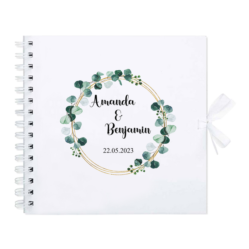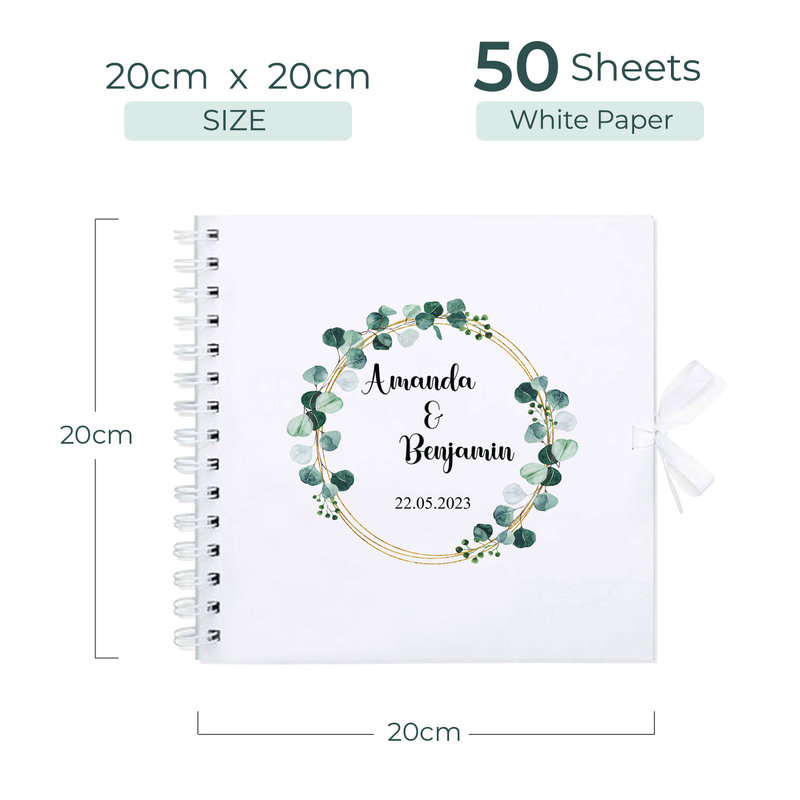 Personalised Wedding Scrapbook Guest Book Handmade Photo Album Eucalyptus Design 20x20cm - Bride & Groom Couples Keepsake Memories