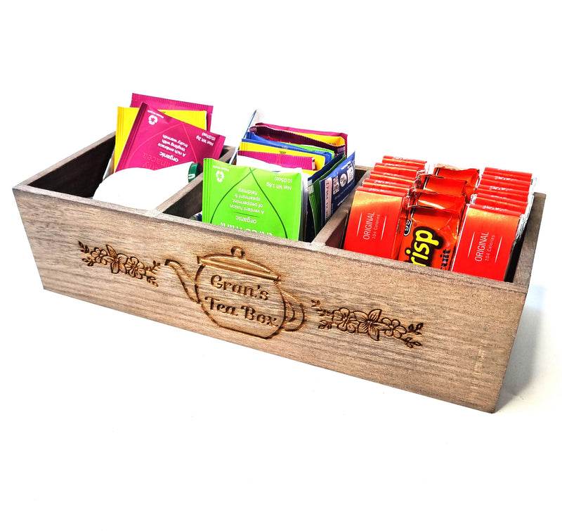 Personalised Tea Box Tea Caddy Storage Tea Bag Organiser for Nanny Gran Mum Nan - Empty