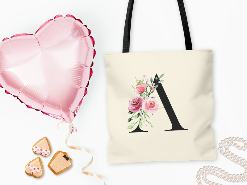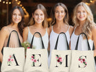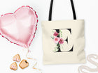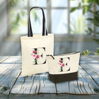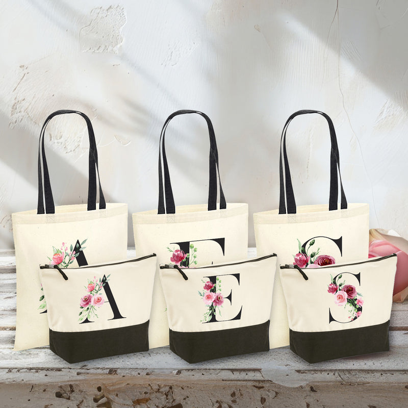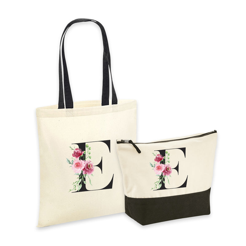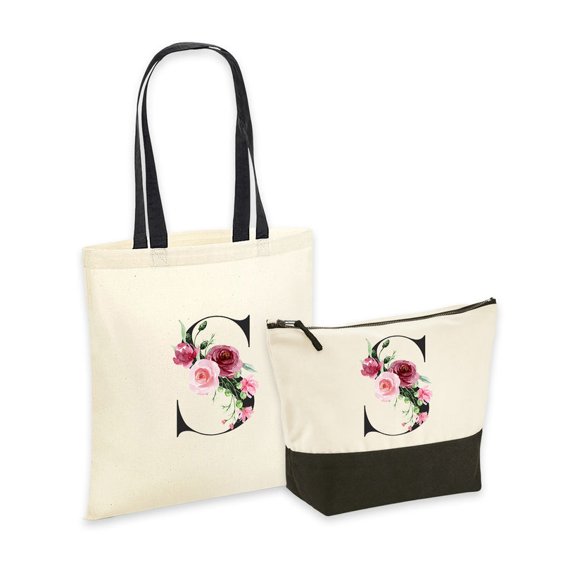 Personalised Tote Bag + Cosmetics Bag Set Gift for Women, Customised Valentines Mothers Day Gift For Her Floral Letter Present