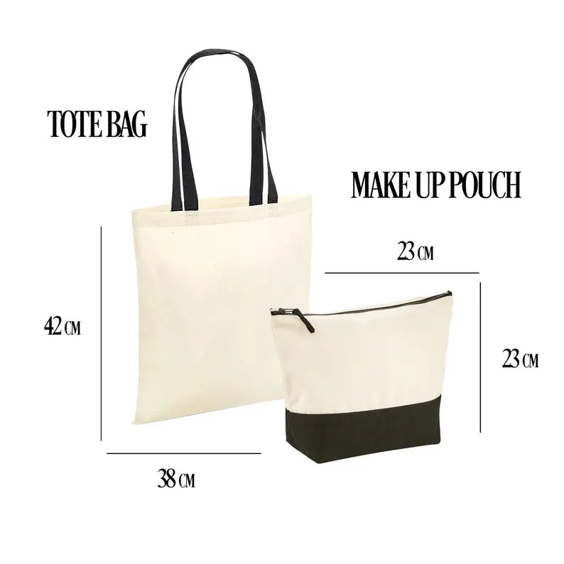 👜 Personalised Tote Bag and Make Up Bag Gift Set - Customise with your initials for a unique touch. Shopping Tote Bag - 42 x 38cm - Make Up Pouch - 23cm x 23 cm