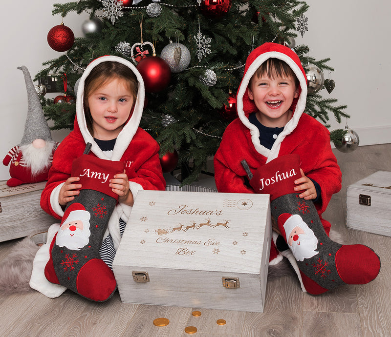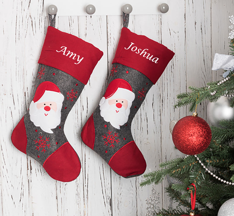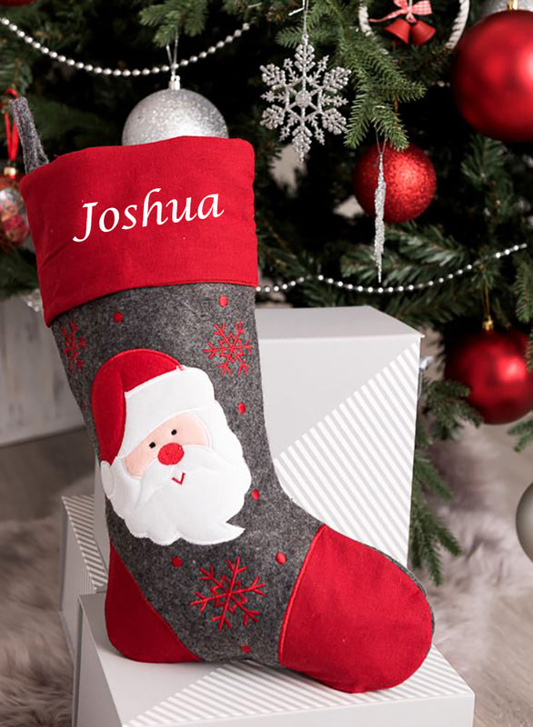 Personalised Embroidered Christmas Grey Red Stocking Santa 40cm